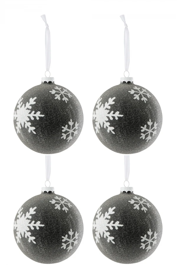 4 Boules de Noël Gris Anthracite Flocons Blancs