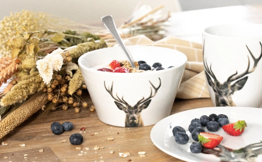 Dans la collection de vaisselle sur le thème du Cerf, voici les bols réalisés en porcelaine blanche.