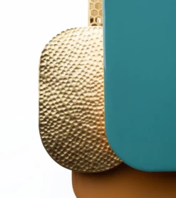 Cette applique est entièrement réalisée en aluminium avec une superposition de plaques aux formes arrondies de différentes couleurs.