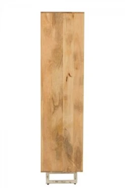 RĂ©alisĂ©e sur un piètement mĂ©tal, cette armoire entièrement en bois naturel est habillĂ©e d’un tissage en rotin naturel sur les portes.