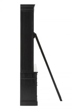 La partie haute propose 4 étagères, accessible par une échelle fournie avec le meuble.