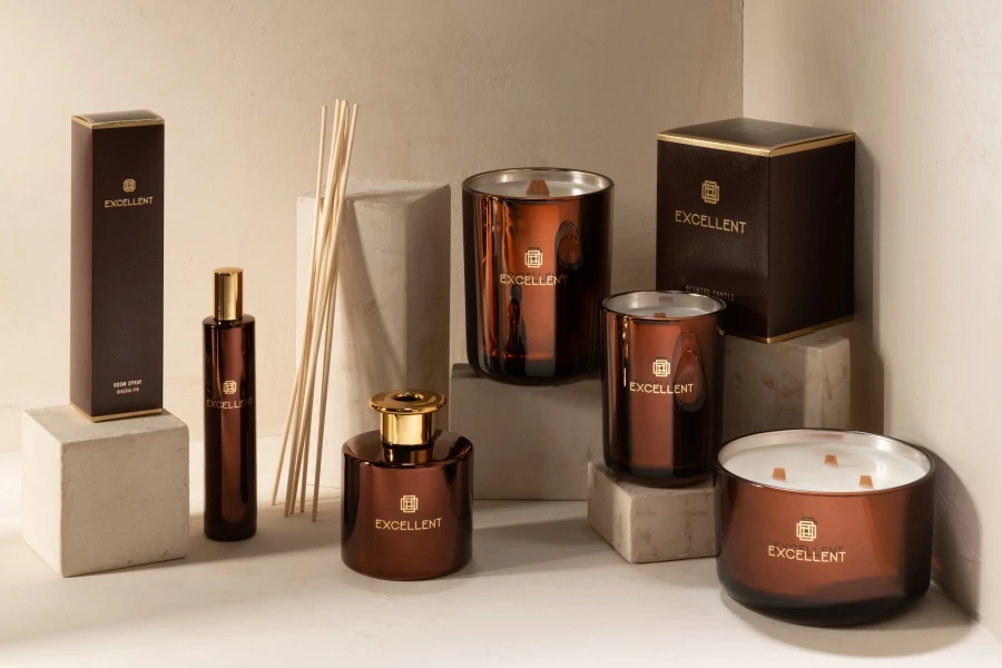 Magnifique bougie parfumée dans son contenant en verre, offrant 3 mèches bois pour la diffusion.