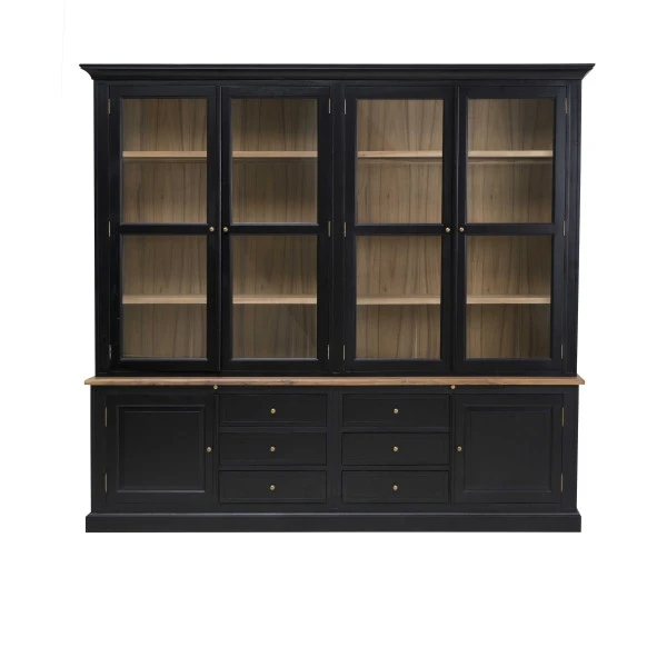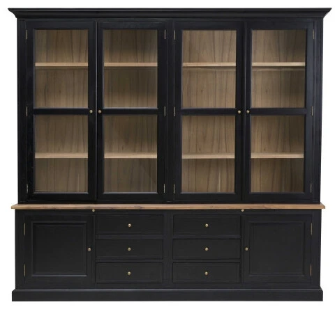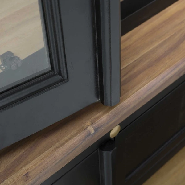 Buffet entièrement rĂ©alisĂ© en bois d’acacia peint en noir sur les extĂ©rieur et naturel pour les intĂ©rieurs.