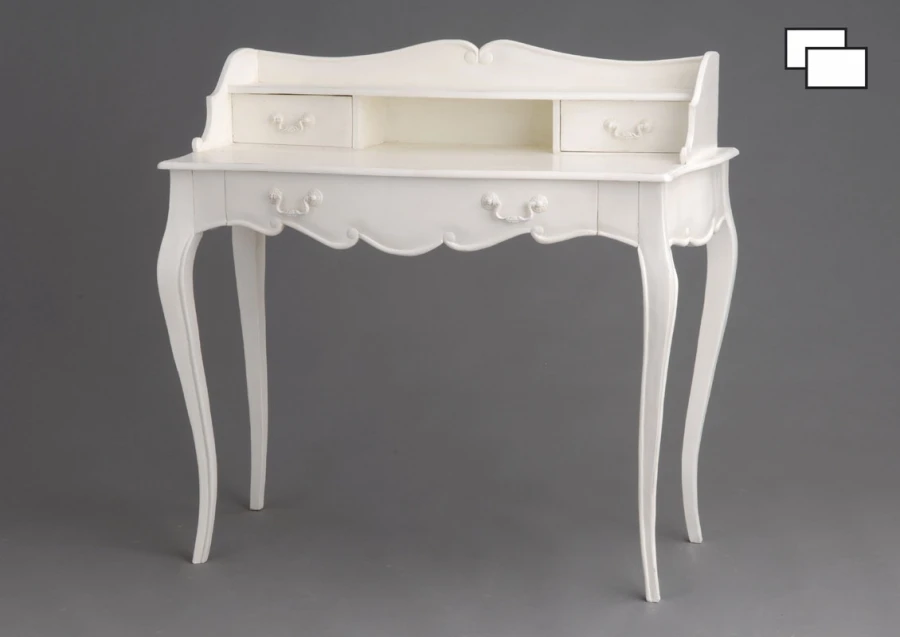 Bureau en bois couleur crème antique joliment travaillé de la collection Apolline.