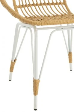 Chaise 1 place pour composer votre salon de jardin et ainsi habiller votre terrasse. Réalisée avec un empiètement métal blanc et habillé d’un imitation osier en PVC couleur naturelle.