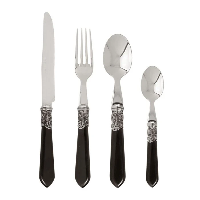 Couverts modèle Baroque noir en inox avec manche plastique, signĂ©s CĂ´tĂ© Table.Â