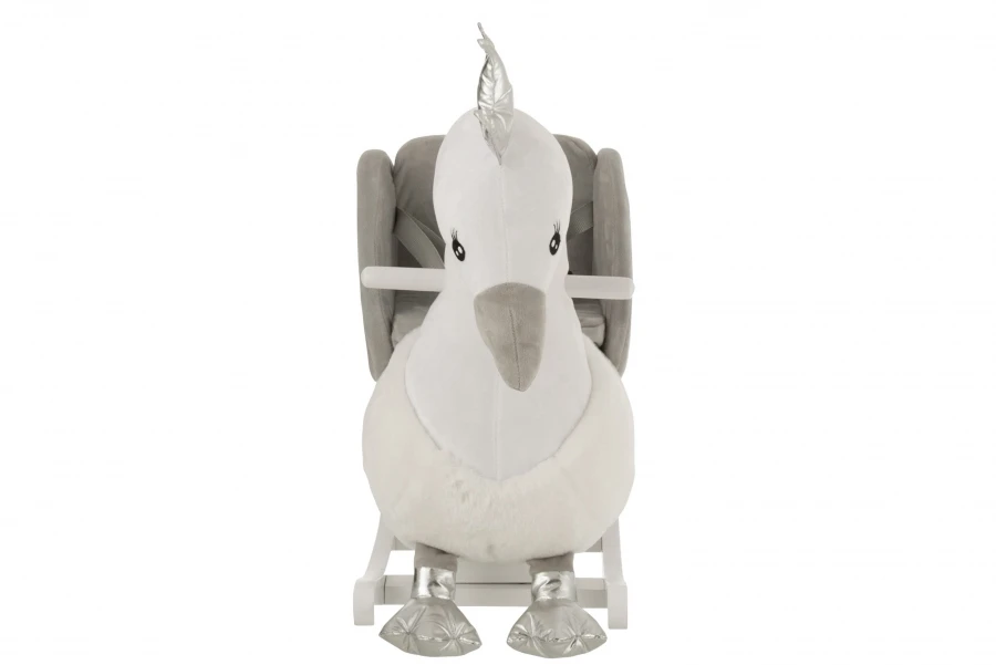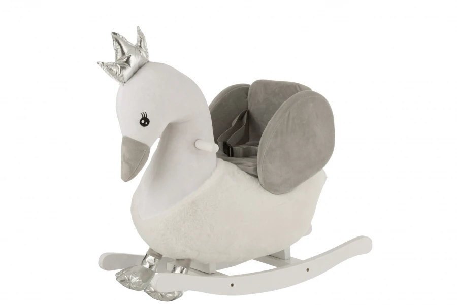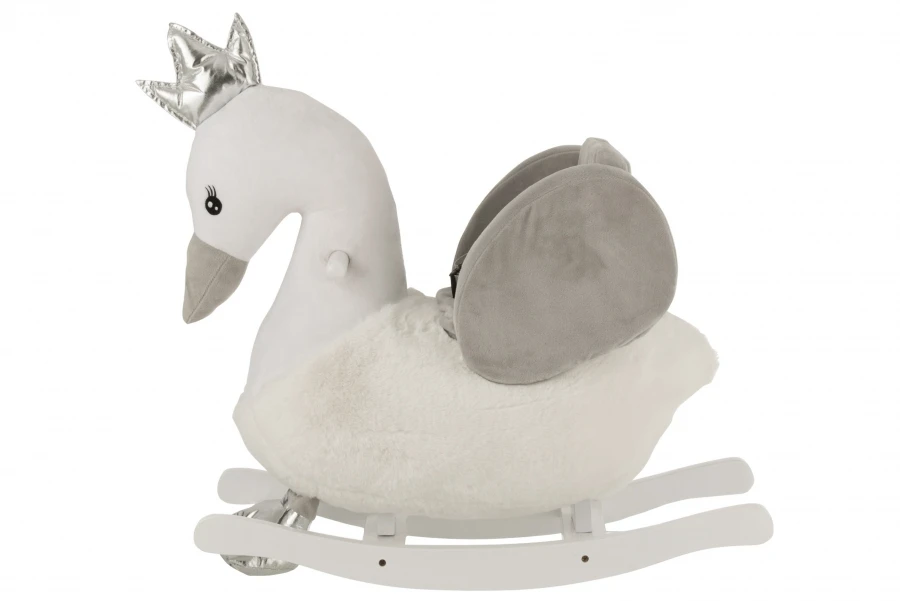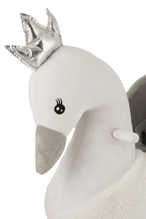 Cygne à Bascule Peluche Velours Blanc Gris