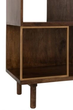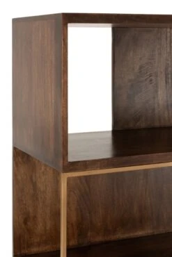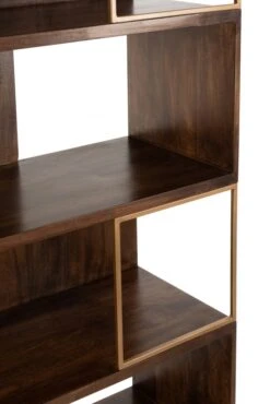 Bibliothèque Vintage, esprit 70’s en bois foncé et cadres métal. Empiètement en bois.