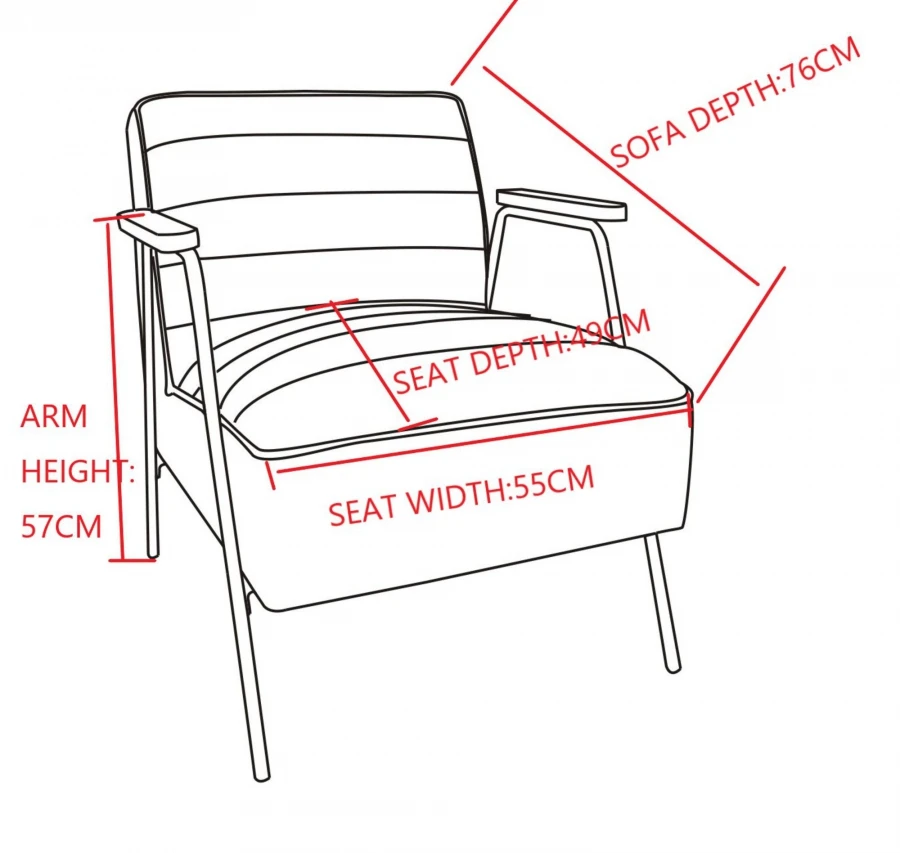 Nouveau fauteuil très confortable en velours avec empiètement métal noir et accoudoirs en bois.