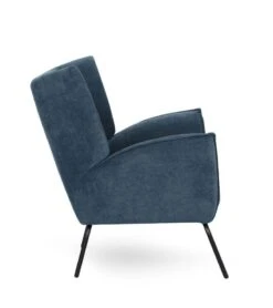 Ce fauteuil grâce à son dossier haut est très confortable. Il est réalisé sur un piètement 4 pieds en métal noir, une structure métal et un habillage en tissu velours très cosy.