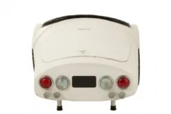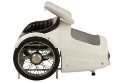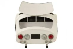 Voici la voiture fauteuil et coffre de rangement, réalisée en métal blanc.