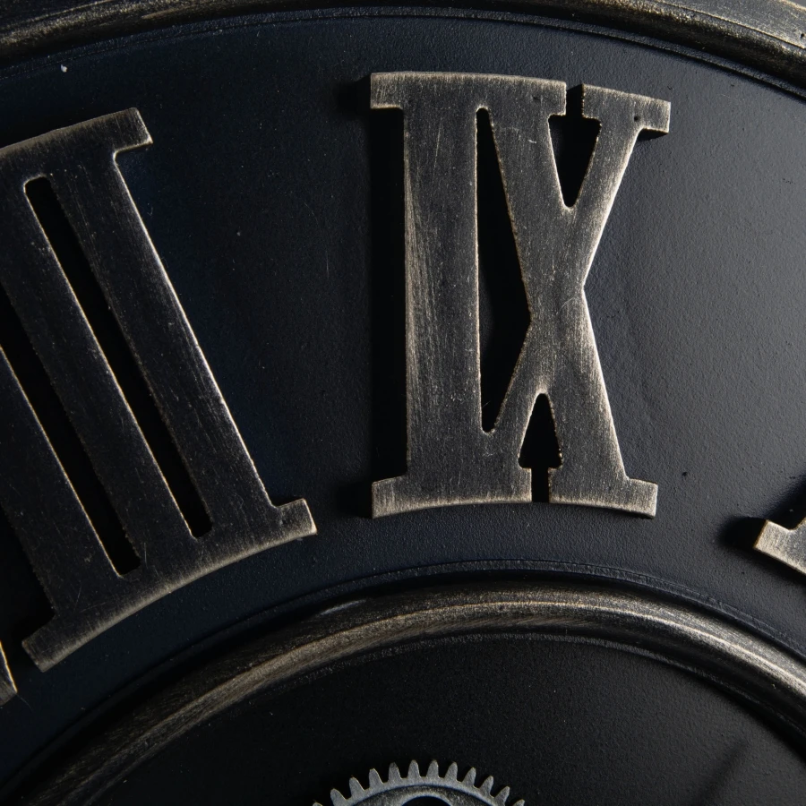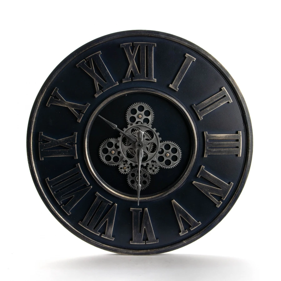 Nouvelle horloge murale ronde en métal style Indus couleur Blue Jean avec mécanisme en mouvement.