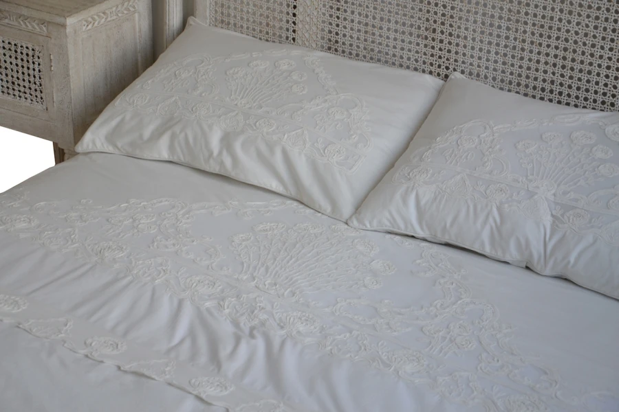 Magnifique housse de couette avec ses 2 housses de taies d’oreiller de la collection Charmantine de la maison Coquecigrues.