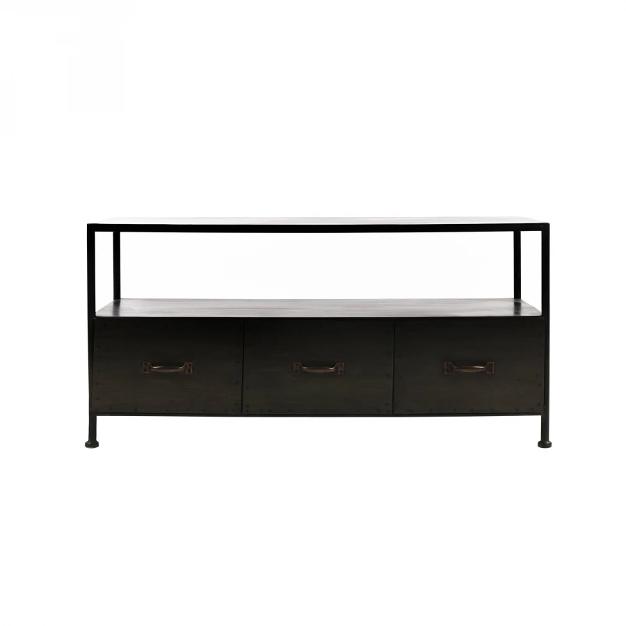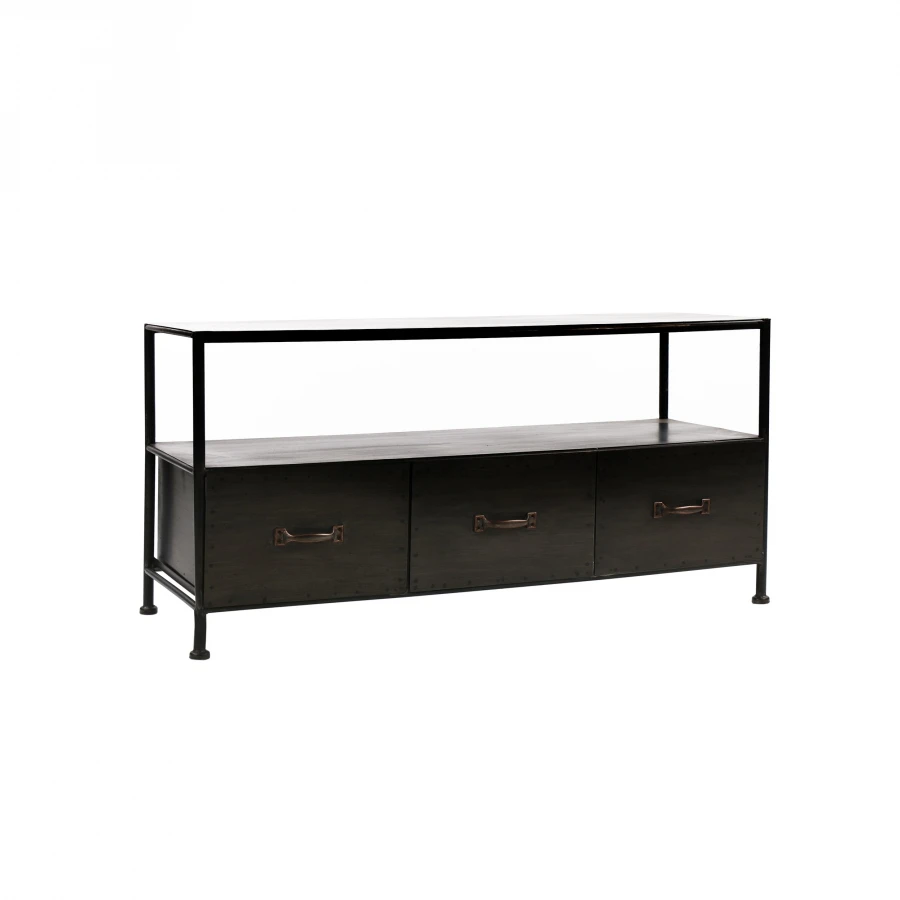 Meuble TV Indus 3T Typographic Métal Noir Pomax