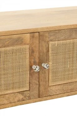 Les portes sont habillĂ©es d’un tissage en rotin naturel.