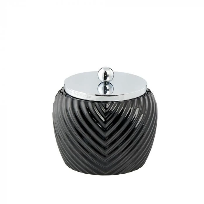 Réalisé en céramique et aluminium argenté, ce pot aux formes arrondies habillera avec luxure votre espace de bain. Très utile pour le rangement des bijoux, coton etc etc