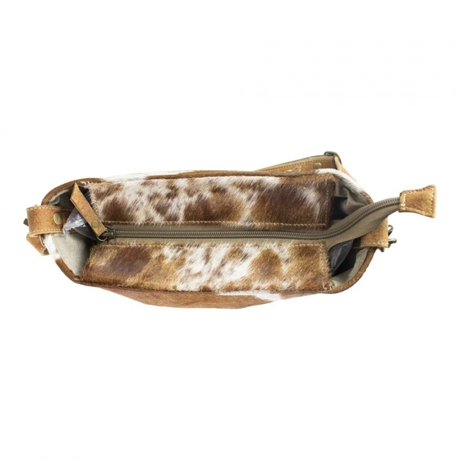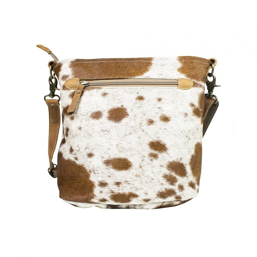 Joli sac à main bandoulière entièrement réalisé en cuir de vache aux couleurs Brun et blanc.