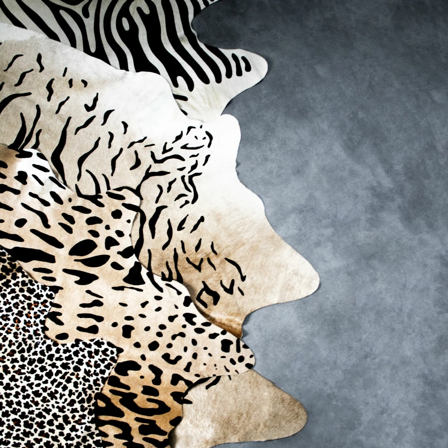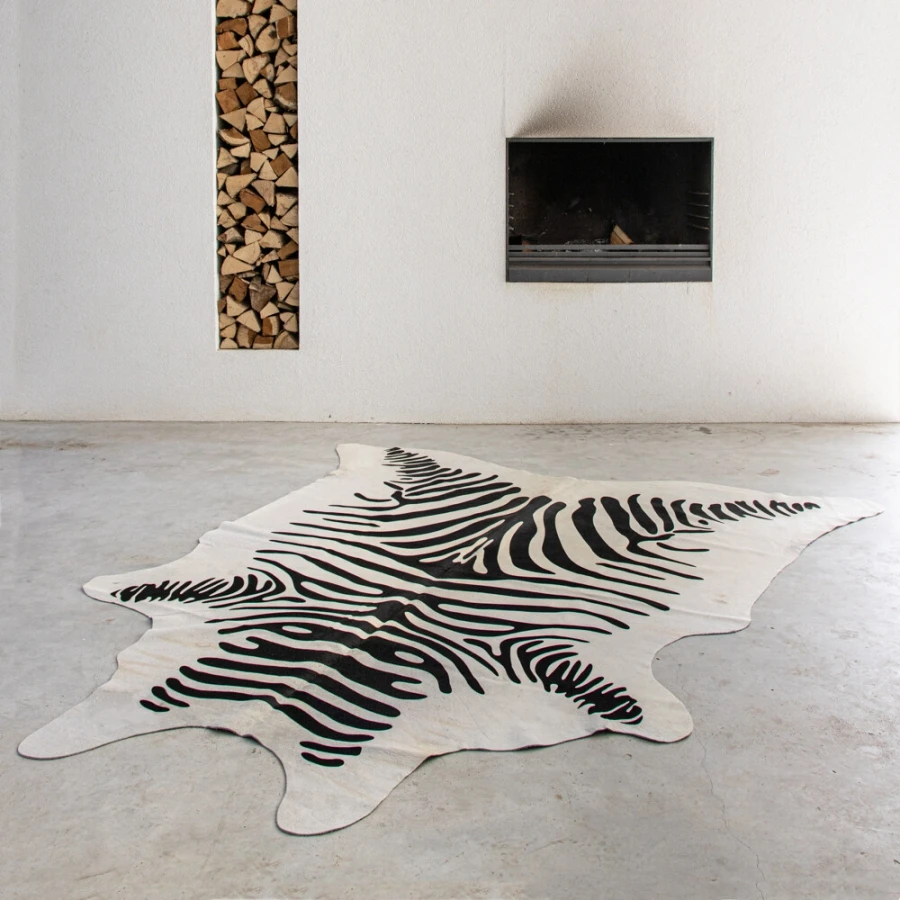 Joli tapis pour habiller votre intérieur réalisé en peau de vache aves des motifs empreinte de Zèbre