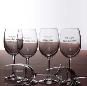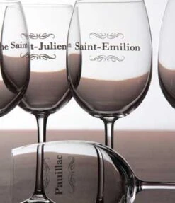 6 verres à vin de la collection Gala, tous sérigraphiés d’un grand cru bordelais.